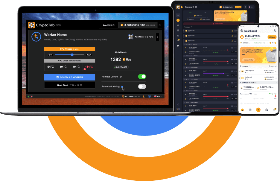 Reposant sur un algorithme CryptoTab rapide et stable, CT Farm permet une utilisation optimale du matériel connecté.