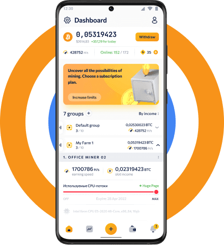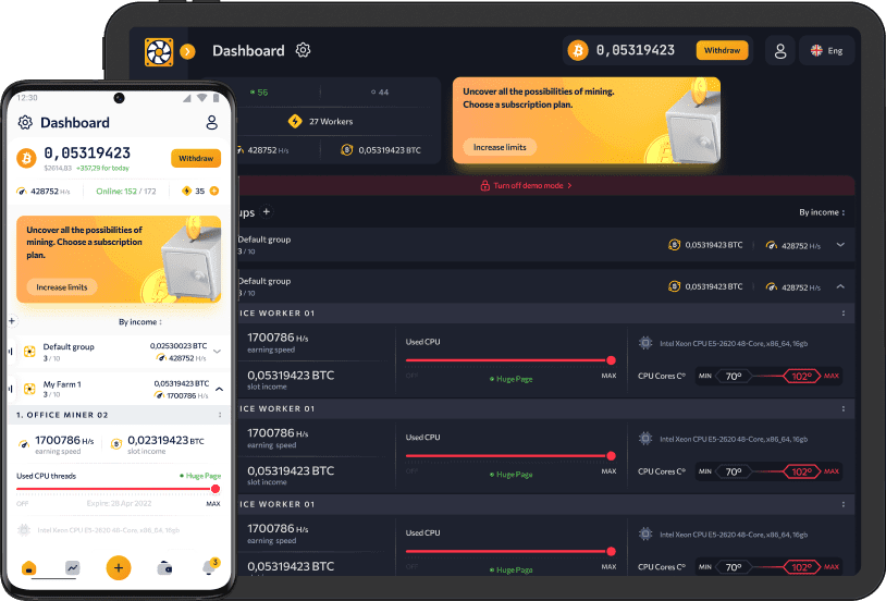 Gagnez des BTC et contrôlez votre ferme depuis n'importe où dans le monde ! Toutes les fonctions de gestion nécessaires sont disponibles sur le tableau de bord auquel vous pouvez accéder depuis un ordinateur ou un appareil mobile.