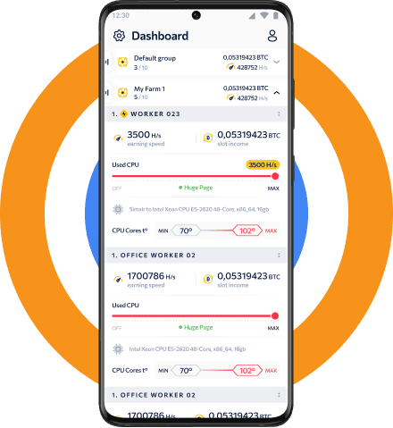 Toutes les informations nécessaires sont à portée de main – solde, fils de CPU utilisés, protection contre la surchauffe. Gardez le contrôle de votre ferme et ajustez les paramètres pour obtenir les meilleurs résultats !